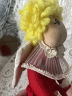 This old doll has some stains and marks on her. Please study pics. Her wings are quilted, which is so charming, however they are age stained and time worn. The old clothes, fabric and lace is so neat!