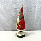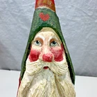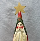 Vintage House of Hatten Father Christmas Belsnickel Santa figurine It is 8-1/2" tall and 2-1/4" wide. There is a star on the top of Father Christmas' hat. The figurine was made in the Philippines and is dated 1989. The figurine has been made to look like carved wood. The wood appears to be aged and worn. It is previously owned and in good condition. There are a few small spots of wear to the paint. Please see photos.