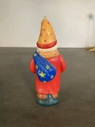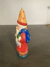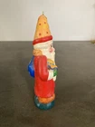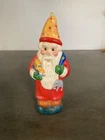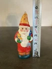 Vintage House of Hatten HOH Santa Claus hand-painted ornament features Santa Claus in a yellow polka dot hat, long red coat, blue toy bag covered with stars and holding an elephant and car. Approx 3.5" tall Dated 1995 - great condition, non smoking home