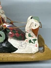 This vintage House of Hatten ornament features a cute Swan Sleigh with a jolly Santa inside. The ornament is perfect for collectors of all ages and would make a great addition to any holiday decor. The brand is well-known for its high-quality ornaments and this one is no exception. The ornament is part of the Ornaments collection and has a few special features that make it unique. It is perfect for those who love vintage items and is sure to bring a smile to anyone's face. Add it to your collection today and enjoy its beauty for years to come.
