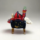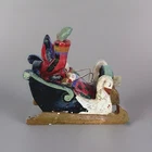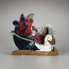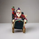 This vintage House of Hatten ornament features a charming scene of Santa riding in a sleigh decorated with two swans, capturing a whimsical touch of the holiday spirit. Handmade in the 1980s, this multicolored ornament showcases a Victorian-style design with intricate details and a 3D effect, making it a unique addition to any Christmas decor collection. The item measures 4-1/4 inches in length, 4 inches in height, and 3-1/4 inches in width, making it a delightful piece that combines artistry, nostalgia, and seasonal charm.