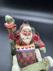 Vintage House of Hatten Santa in Swan Sleigh Christmas Ornament Folk Art 1989 is in good preowned condition. No chips nor cracks. Please see photos for reference. If you have any questions, I’m happy to help. Thank you so much.