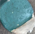 Measures 4" tall x 2 1/2" wide and 3 1/4" deep. Santa head with rosy cheeks and wreath of holly and berries on his head.