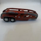 This vintage Hubley Transport red cast iron car hauler is perfect for collectors and toy enthusiasts alike. The trailer is beautifully designed with intricate details and features a sturdy hitch for easy towing. The vibrant red color adds a pop of color to any collection. The trailer is made of high-quality cast iron material and is built to last. It can haul various types of cars and trucks and is perfect for display or play. This item does not include a truck, just the trailer. Add this vintage car hauler to your collection today!