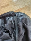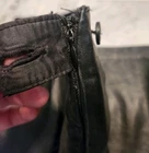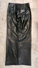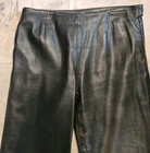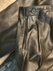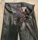 Here are the measurements: Waist: 26" Hips: 34" Length: approximately 37" Bottom leg opening: 13" There is some wear on around the top of the zipper. There is also a few white dots on one of the legs. It also is a little creased on that leg. These are lined with 50% nylon and 50% acetate. The shell is 100% leather.