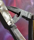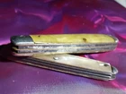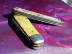 Pair of vintage knives, each has 2 blades (one bottle opener and/or flat screw driver) Off white in "marble", white in "cracked ice".