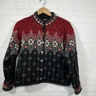 Vintage Icelandic Design Wool Cardigan Womens Large Fair Isle Jacket Cabincore See measurements for accurate fit Shoulder to hem 22 inches Pit to pit 21 inches Sleeve length 20 inches All measurements are done flat lay
