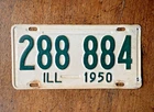 1950, Illinois, White with green lettering, metal, auto, license plate / tag. Approximately 11 1/4" x 5 5/8". Please refer to the pictures to assess condition. If you wish to see more pictures or have any questions, please ask. I do not accept returns. Thank you for looking!