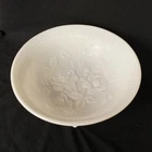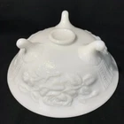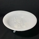 Vintage milk glass three-footed bowl with roses. By Imperial Glass of Ohio. Manufactured sometime between 1950 and 1971.