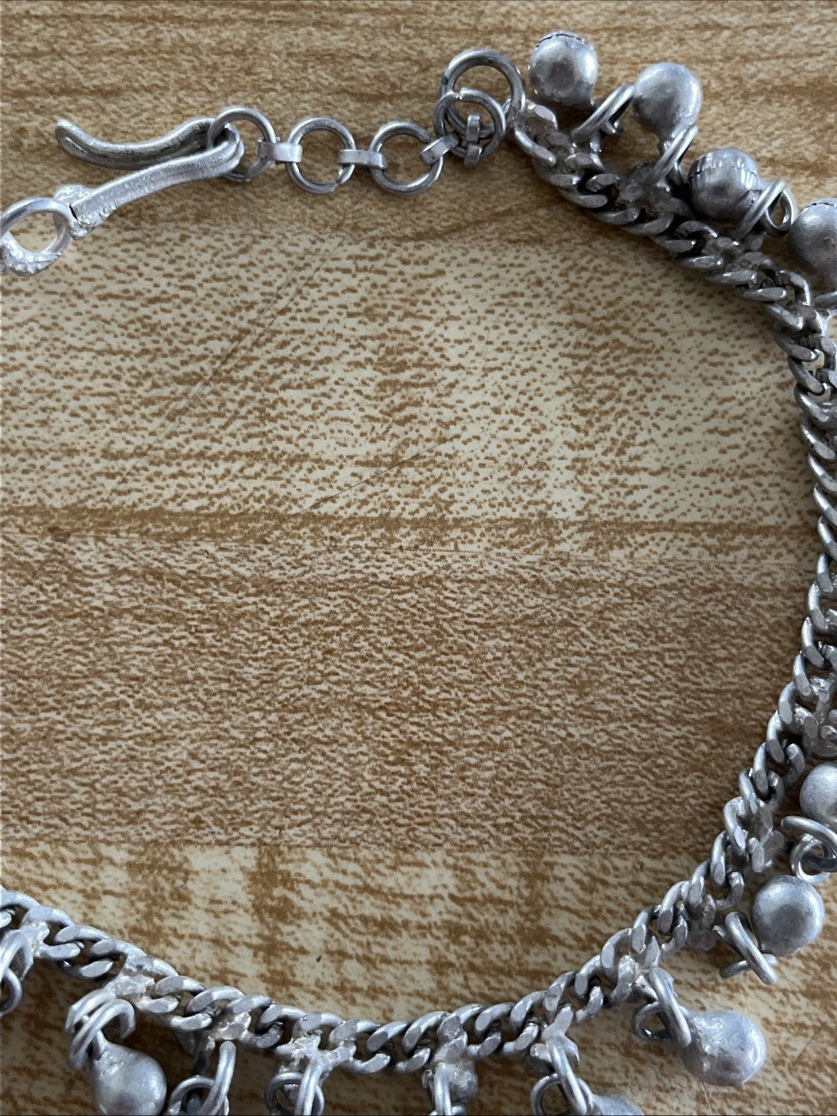 Add a touch of vintage charm to your ethnic outfit with this Indian tribal anklet with bells. The anklet measures 25 cm long and features a beautiful combination of silver and another metal, giving it a unique appeal. The bells add a playful touch, making it perfect for any Indian occasion. This branded anklet is a great addition to your jewelry collection. No returns accepted.