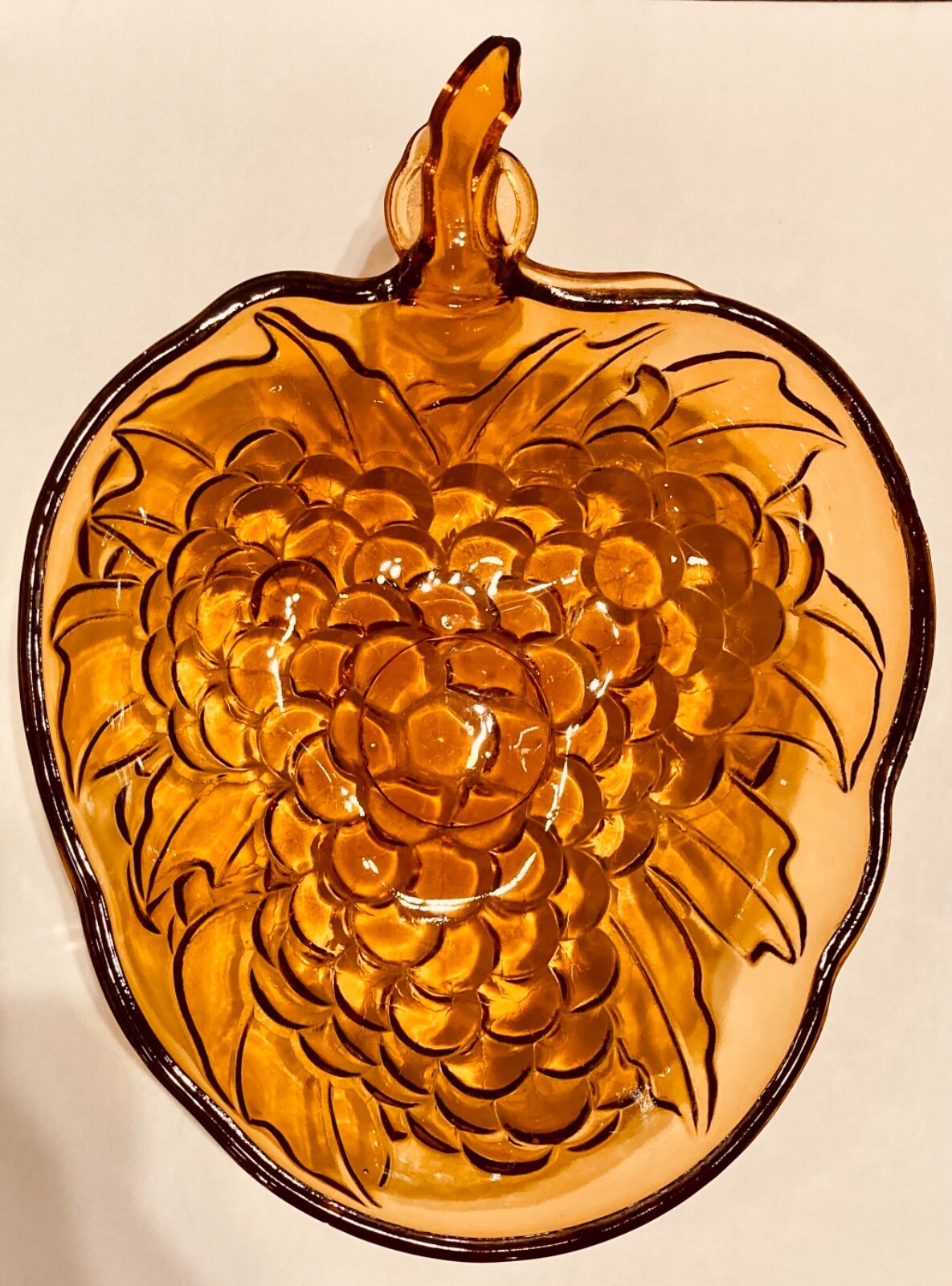 Indiana Glass Yellow Grape Cluster Serving Fruit Salad Bowl 13" Vintage Vintage Indiana Glass Bowl Amber Heavily Embossed Grapes Fruit