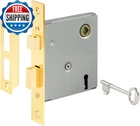 REPLACE ANTIQUE MORTISE LOCK SETS – The vintage look of the Prime-Line E 2294 Mortise Lock Assembly Kit is a great match for the old lock sets found in period homes. Used with antique and vintage door hardware, the kit is an economical replacement for indoor mortise locks. EASY INSTALLATION – Installation is quick and easy, and all mounting screws are included. The mortise lock easily slides into the existing door pocket for an fix for a broken lock. It has a 2-3/8” backset with a 9/32” square spindle drive that accepts a maximum spindle size of 1/4”. STEEL WITH BRASS-PLATED FINISH – The E 2294 lock is constructed from case-hardened steel and features a faceplate with a bright, brass-plated finish. The kit includes a latch and deadbolt strike with fasteners (door knobs, square spindle, spare keys and trim plates sold separately) and two skeleton-style keys. LEFT OR RIGHT-HANDED INTERIOR DOORS – The mortise caselock ships handed (to close in a certain direction) but the latch can easily be reversed for opposite swinging doors. INSTALLATION TIP – Although the square drive on the latch has a 9/32” opening, it will only accommodate 1/4” square spindles. When it’s time to replace damaged or missing vintage-style mortise door locks, look no further than Prime-Line’s E 2294 Mortise Lock Assembly Kit. The cast steel construction and brass plated finish closely match the mortises of period homes and are perfect for antique doors. The skeleton key locking system and vintage look of the faceplate won’t take away from the originality of the antique hardware throughout the home. The mortise lock assembly set has a 2-3/8 inch backset with a 9/32 inch square spindle drive that accepts a maximum spindle size of 1/4 inch. The kit includes a latch and deadbolt strike with fasteners (door knobs, square spindle, and trim plates sold separately) and two skeleton-style keys. Although the E 2294 lock set ships handed (to close in a certain direction), the latch can easily be reversed for opposite swinging doors. Installation of the brass-plated steel mortise lock set is quick and easy, and all mounting screws are included. The mortise lock easily slides into the existing door pocket for an economical replacement of damaged or missing vintage lock sets that will perfectly complement the antique design of your home. Installation Tip: This item cannot be used on pre-bored doors that have large, newer style door knob holes without first prepping them to receive this hardware. Installation Tip: Because the fasteners of the rosettes (purchased separately) require a solid surface to mount to, the large 2-1/8 inch (approximate size) holes must first be filled with a hardening filler, to then be able to receive the rosette fasteners. Products like Fix-It-All and Bondo Body Filler have worked well for some, but care must be used to avoid damaging any prefinished door surfaces during application and finishing. Installation Tip: Apply a small amount of Loctite ThreadLocker 271 to the set screw threads in the event they are loosening – Loctite must be purchased separately.