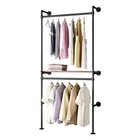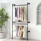 Heavy duty metal pipe combine with thick shelves make it super stable and sturdy, no worries about it wobbling and collapsing.This industrial clothes rack is Ideal for being a long-term closet storage organizer. The wall clothing rack is the perfect solution to maximize your limited storage space, and keeps your clothes, shoes and bags in order. The two-layer shelf keeps everything you want neatly organized. Our pipe wall clothes rack is perfect for both home and professional use, it's a great way to display clothes, shoes and accessories as well as holding seasonal decorations. Racks can be arranged so that it suits your space. This black clothing rack features a unique design that allows you to install it without any help. It comes with easy-to-follow assembly tools and instructions. Once installed, this industrial clothing rack is a great way to display your clothes without leaving an unsightly pile of laundry on the floor. Industrial wall clothes rack overall size:37.3''L*9.8''W*86.6''H.Soild wood:40L x 9.8W x 0.78H. Double poles can hold a lot of clothes, good quality.