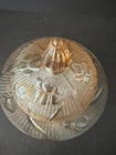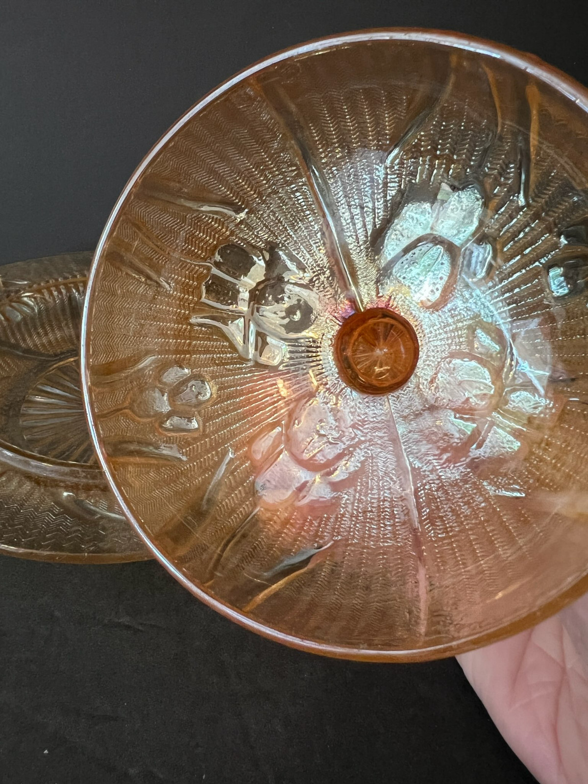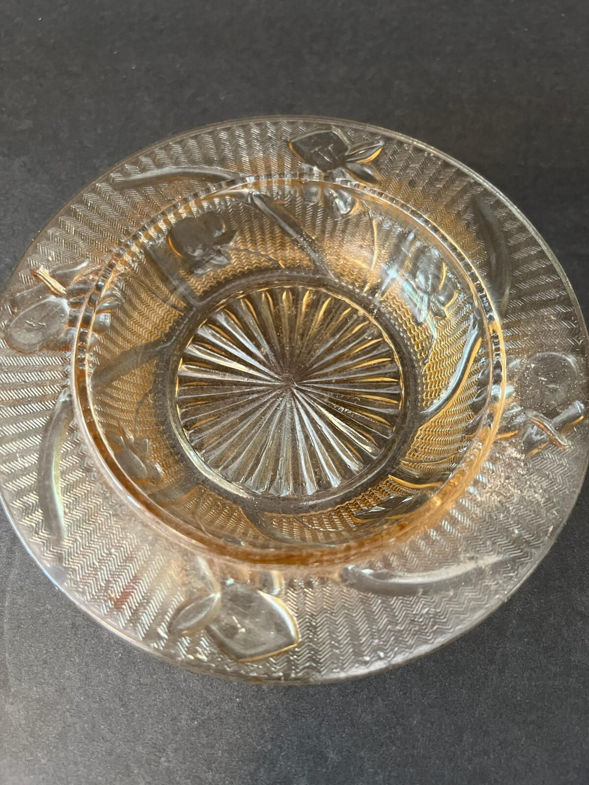 This butter dish is absolutely stunning—the iridescent colors and vintage carnival glass design make it a true gem. The tiny chip on the underside is barely noticeable and doesn’t take away from its beauty. It’s in great condition overall and adds a touch of retro charm to my kitchen. Love it!