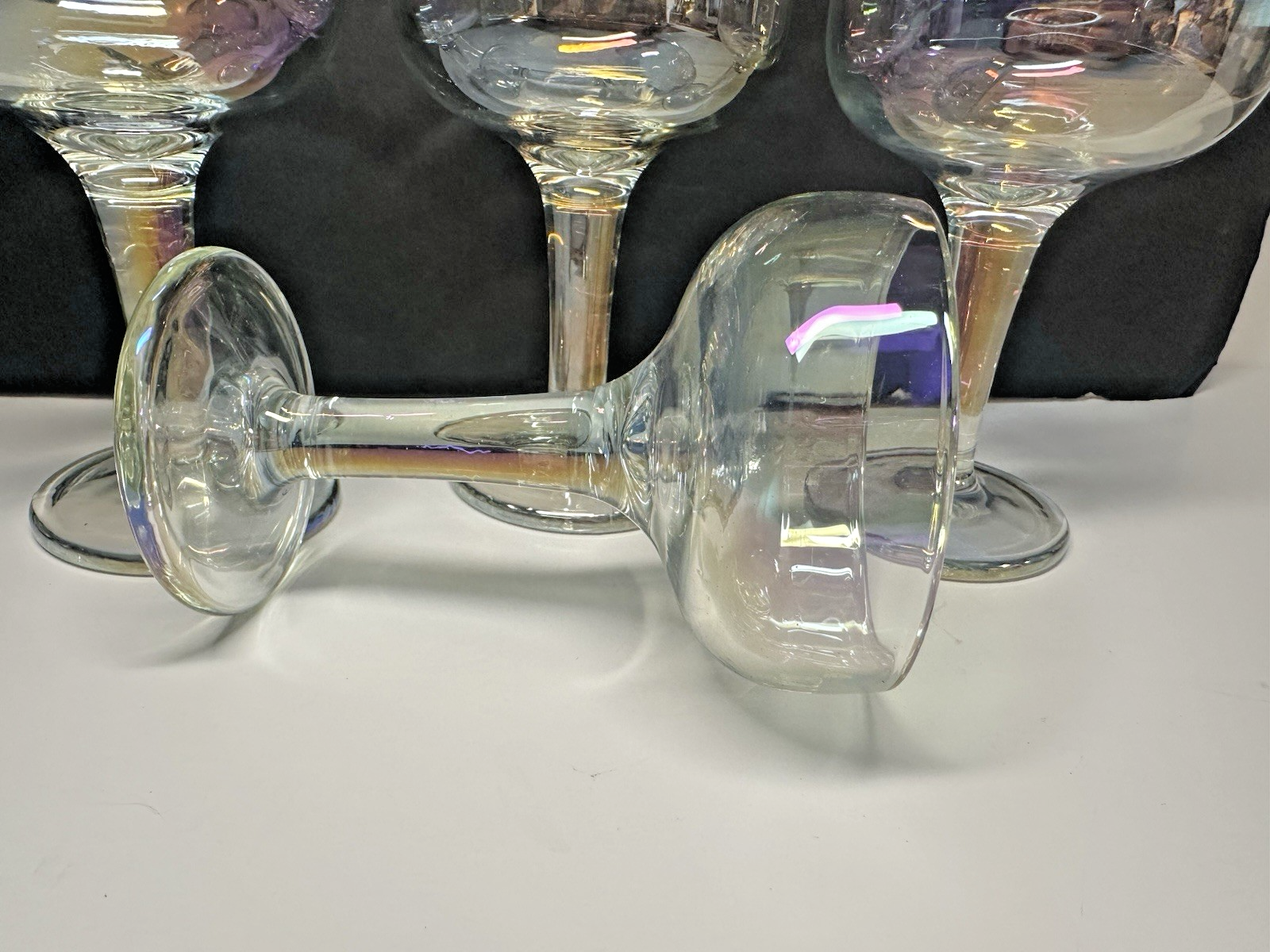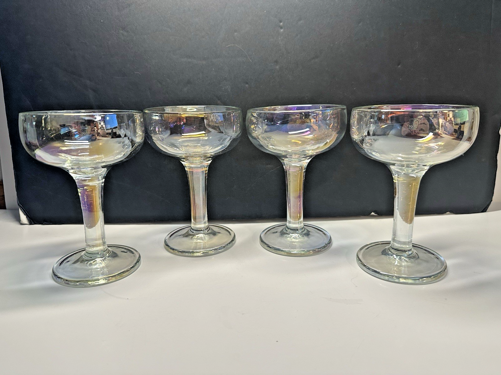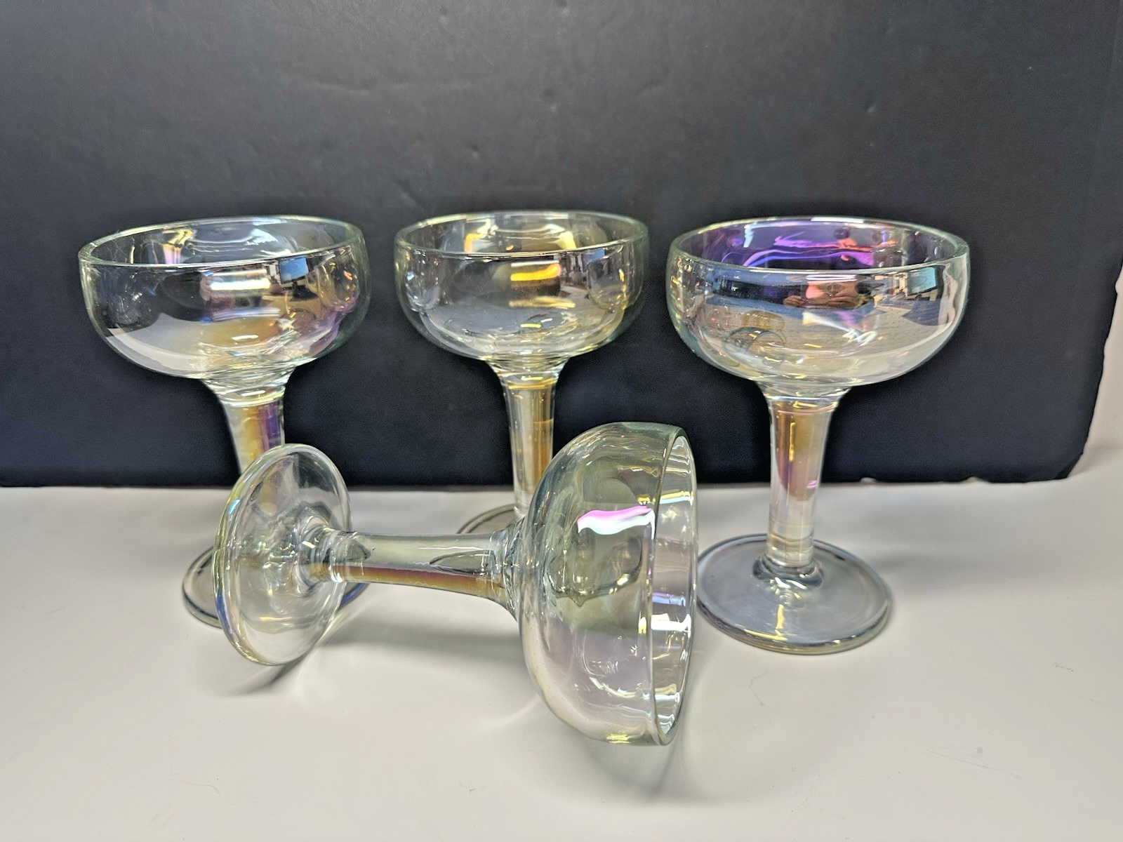 Set 4 ~ Vintage Iridescent Wine Champaign Glasses Great for serving sherbet, ice cream ~ There are no chips, cracks, repairs or scratches. Approximately: 3 1/2" D x 5 1/4"H ~ Capacity 6 oz Thank you for looking. Check out my other items I have in my store. ~~Corner Side Variety~~ Items come from a smoke & pet free home Please view all of the pictures. I try to examine all pieces closely and note any issues. If you need add’l pictures or have questions, please ask prior to purchasing, to ensure purchase satisfaction. I strive for 100% customer satisfaction and value your positive feedback. If I charge for shipping, I will combine shipping with multiple purchases. Shipping and Handling includes a tracking number. NOTE: Depending on final packing & your zip code, I may use FedEx or UPS instead of USPS.