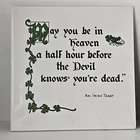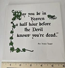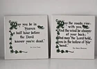 The vintage Irish trivet wall plaques set features Irish toasts and Gaelic blessings with a shamrock design. This Celtic-themed collectible showcases traditional Irish culture and heritage.