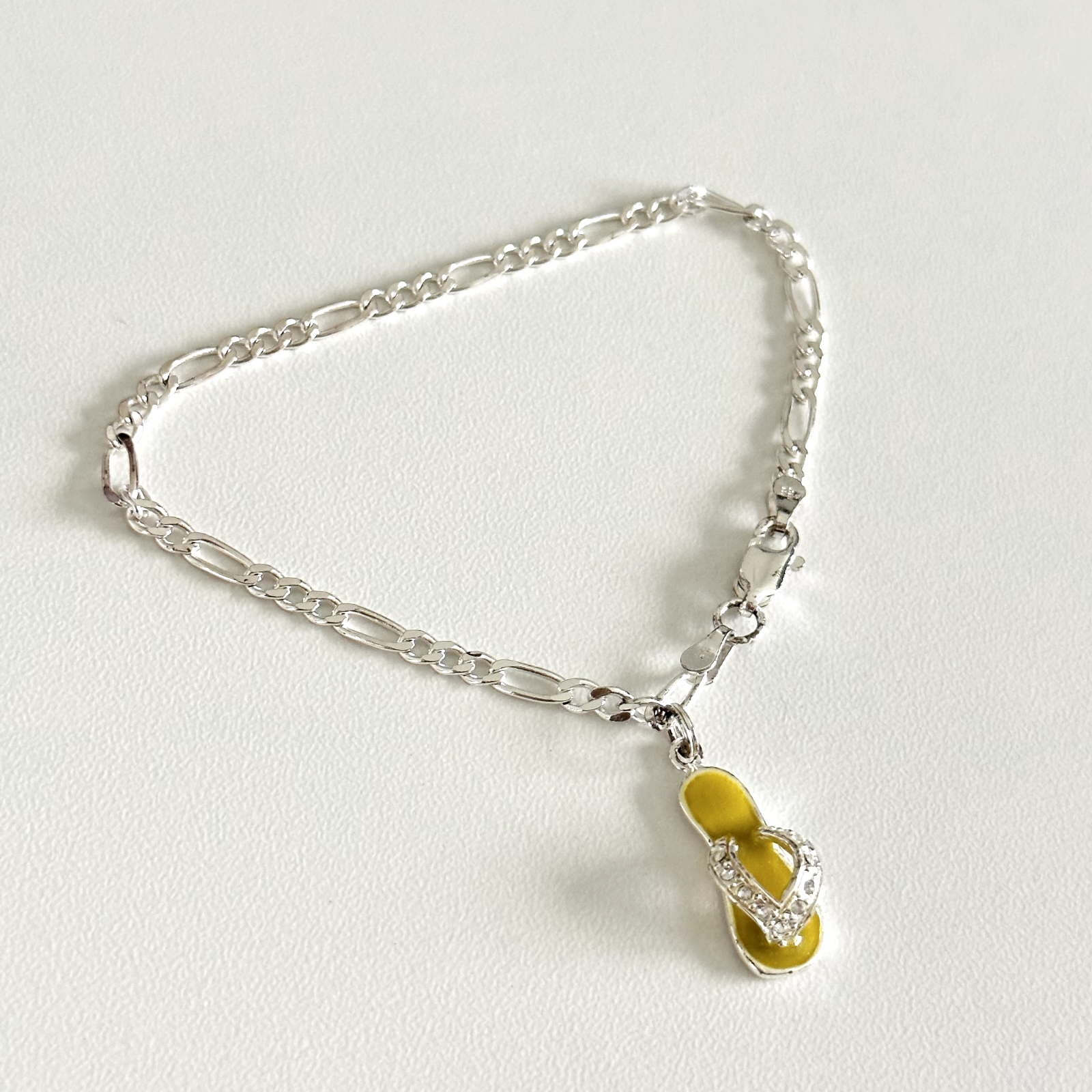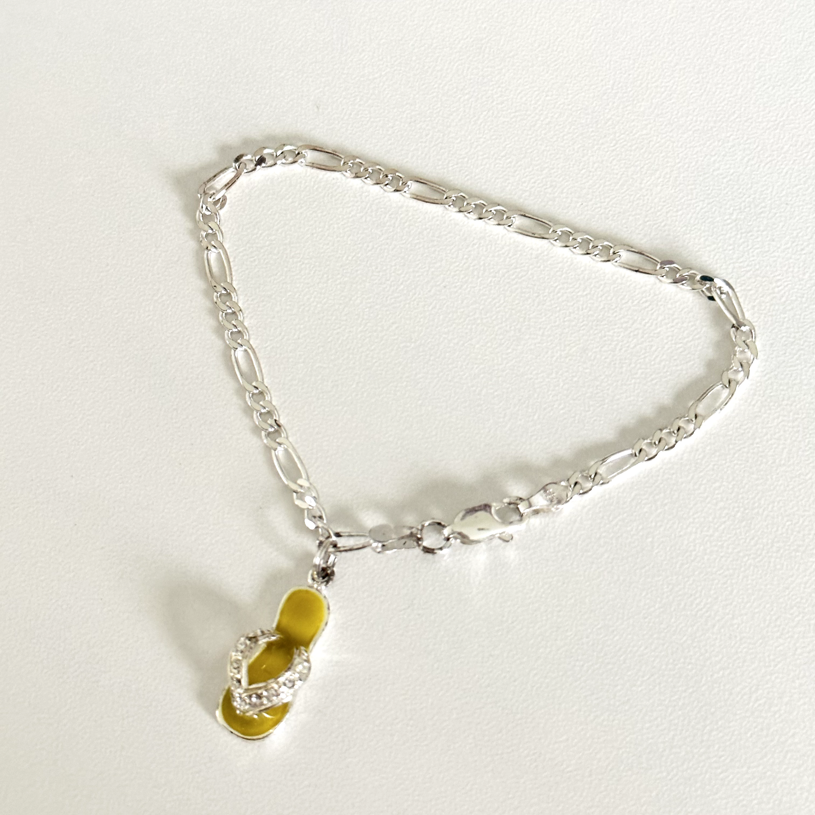 925 Italian Sterling Silver Vintage Yellow Enamel Flip Flop Charm Bracelet Length: 7" Chain width: 3mm Weight: 5.1 grams Very good condition. - Fast shipping, I ship the same or next business day! I also combine shipping. - Thank you so much for shopping with me and please check out my other jewelry listings, I post new pieces daily !