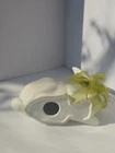 Add a touch of Italian elegance to your Easter decor with this beautifully hand-painted ceramic figurine of a white rabbit. The glossy finish and unboxed packaging make it a perfect gift for any room. This medium-sized figurine features a bunny mom and is ideal for adults who love seasonal-themed collectibles. Its collection is animals, and it is perfect for Easter occasions. The rabbit character is perfect for anyone who loves rabbits and wants to add a touch of charm to their home decor. Made in Italy, this figurine is a unique and beautiful piece that will complement any room's style. It is used vintage condition . No box