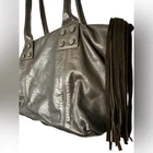Vintage Brown Leather Amber Rose Purse Handbag made in Italy. 14x8.5. Originally $598. Side tassel. Zip top closer. Red lining.