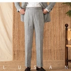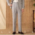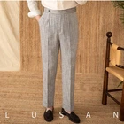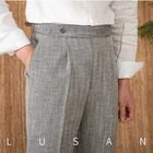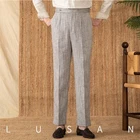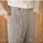 Breathable Linen Men Summer High-Waisted Loose Fit Drawstring Pants