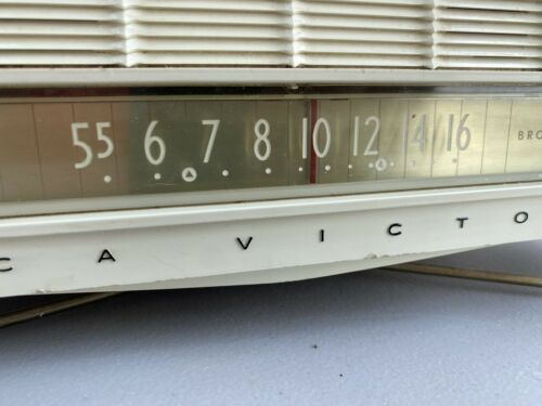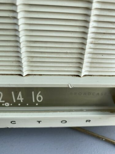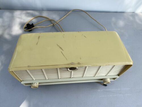 Radio has some cosmetic wearing shown in images. Powers on and volume works. Will need antenna. Push the volume nob to power on this radio. Measures: 12.5" long, 7.25" tall