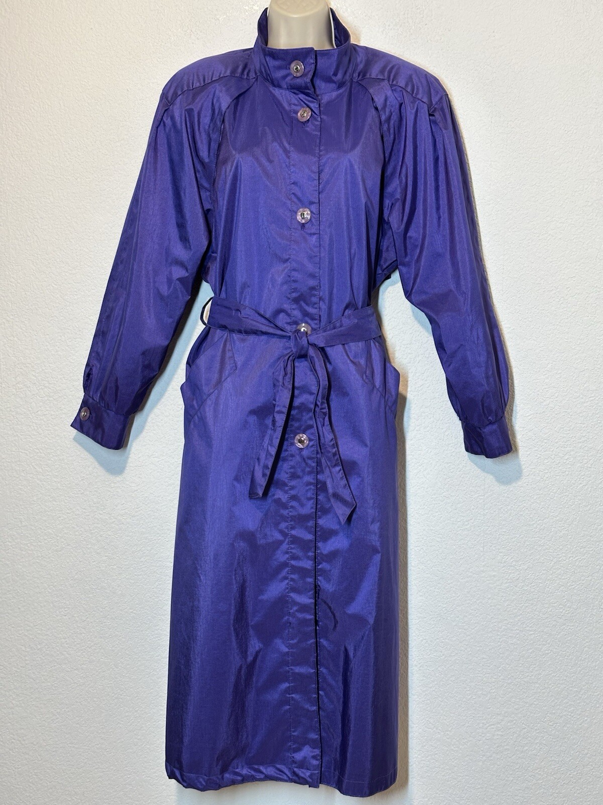Vtg J. Gallery Iridescent Purple Trench Coat Petite 11/12 Belted Classic Very Good Condition. SEE PICTURES