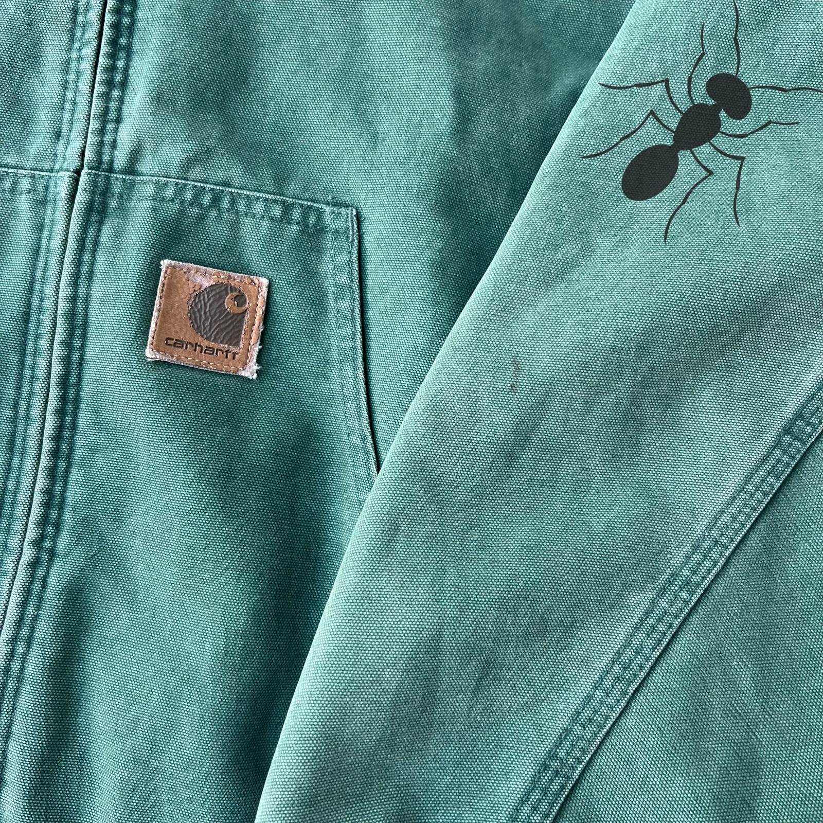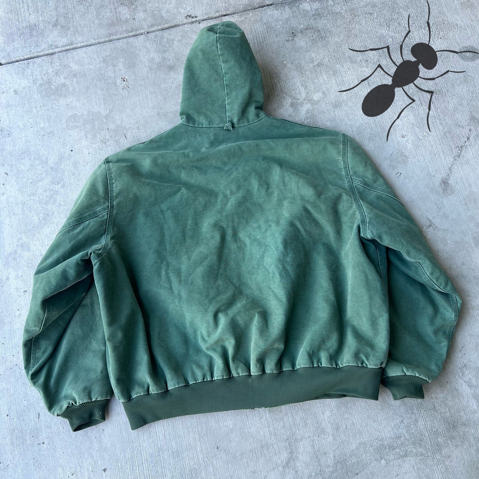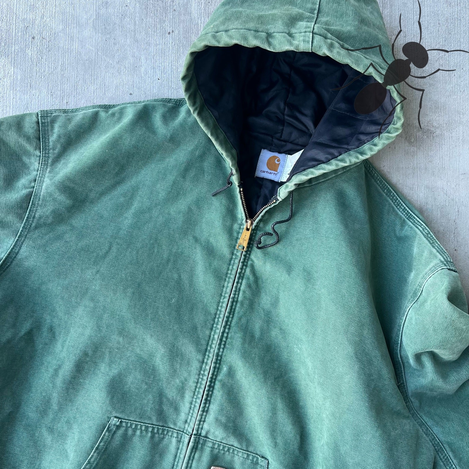 Vintage JQ294 green 4XL Carhartt hooded work wear jacket. Amazing jacket! Nice lighter quilt lining. Rare size and great color. Measures 34 pit to pit and 30 length. Pretty wide and for a larger person so Please check measurements before purchasing. I do my best to show any flaws in pictures. Quick shipping! Bundles encouraged! @ants_haul on Instagram. 1A!!!