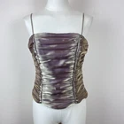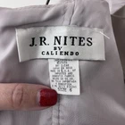 Vintage JR Nites by Caliendo Womens Shirt Polyester, nylon and spandex blend Chiffon organza Square neckline Ruched Zipper closure in back Boning Spaghetti straps Irridescent Metallic 90s Y2K Party Formal Date Night Excellent preowned condition Measurements in photos Size 6 Made in the USA