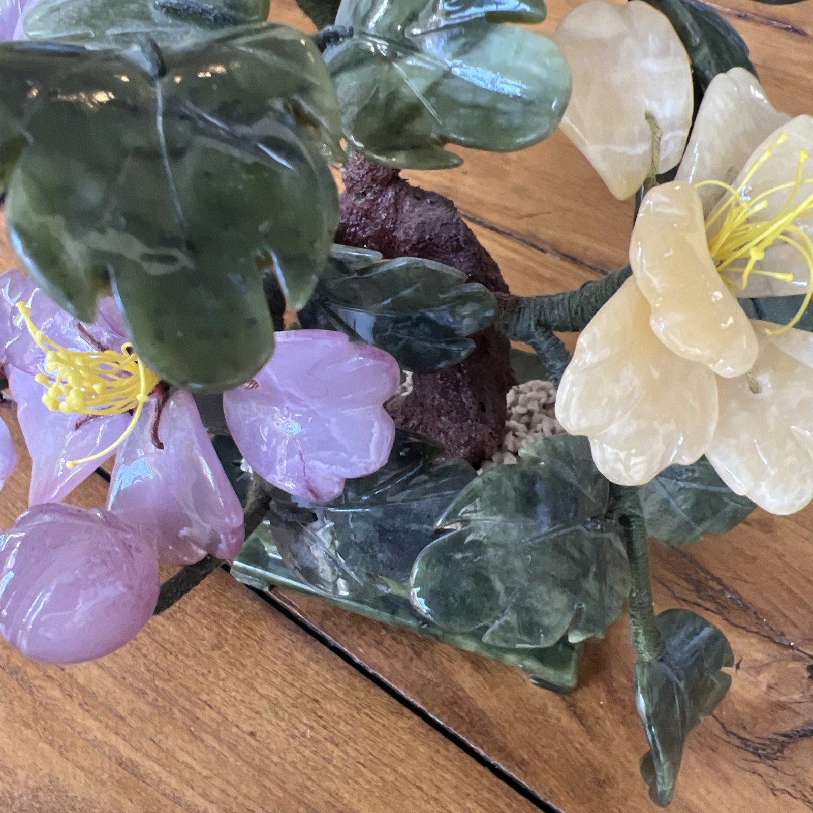 Beautiful Jade Rose quartz and Calcite Bonsai Tree in good vintage condition. The jade tree is a symbol of prosperity and good luck.
