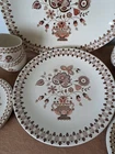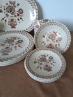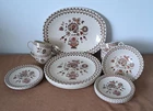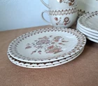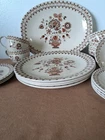 Johnson Brothers Jamestown Sraffordshire Old Granite Vintage 17 Piece 12" x 9.5" serving platter, four 10" dinner plates, 4 coffee cups, three 6.5" plates, and 4 saucers.