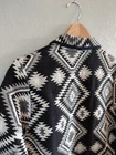 This Vintage Jane Ashley Jacket is a stylish Aztec Western Southwest tapestry button-down with a Southwest pattern, perfect for fall, winter, and spring. The jacket features a collared neckline, long sleeves, and pockets, making it versatile for various occasions including travel, casual, workwear, and business. Hand wash only, this regular fit jacket in size M is a unique addition to any wardrobe, adding a touch of Western flair to your outfit.