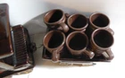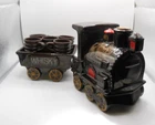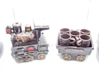 Add a touch of vintage charm to your home bar or mancave with this 8-piece ceramic Whiskey (WHISKY) Decanter Train set from Japan. The set features a unique train and car shape, with a classic 1950s style and colorful multicolor brown drip glaze finish. This original set is perfect for any collector of barware and makes a great conversation piece. Crafted from high-quality ceramic, and hand-painted, this decanter set is both durable and stylish. It includes the engine, the 'WHISKY' car and 6 plastic shot cups/mugs! Don't miss the chance to add this one-of-a-kind set to your collection today! It measures 10.75" in total length, the engine is 5.0" L x 3.25" W x 4.75" H. The car is, 4.75"L x 3.25" W x 2.5" H and the shot cups/mugs are 1.58" High. Only thing missing is the smoke stack lid. Please see all pics, as they are part of the description. I try to describe my items exactly as they are and will never leave out important info, but being a human, I could make a mistake and leave something out, so if you have any questions, please just ask. :) I am happy to combine shipping as long as items can be safely shipped together. * I offer 2 business day shipping, but most times I ship within 24 hours-depending on the day of the week. But even on weekends, I pack and buy/print the shipping label with the next business date of shipping, so it is all ready to go. * I also ship INTERNATIONALLY, but only through ebay's International Shipping Program. * Thanks for looking! ~~~~~~~~~~~~~~~~~~~~~~~~~~~~~