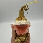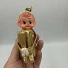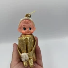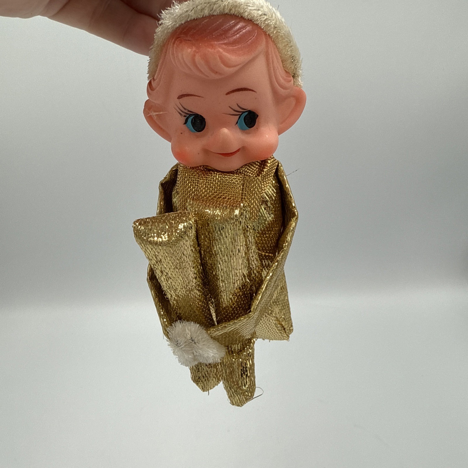 The Vintage Made In Japan Gold Knee Hugger Pixie Elf Doll Ornament is a charming collectible piece perfect for Christmas decorating. This ornament features a unique gold color and vintage design, adding a touch of nostalgia to your holiday decor. Made in Japan, this ornate doll adds a whimsical and festive element to your Christmas tree or seasonal display. Ideal for collectors or those who appreciate one-of-a-kind holiday ornaments, this vintage piece is sure to bring joy and character to your home during the festive season.