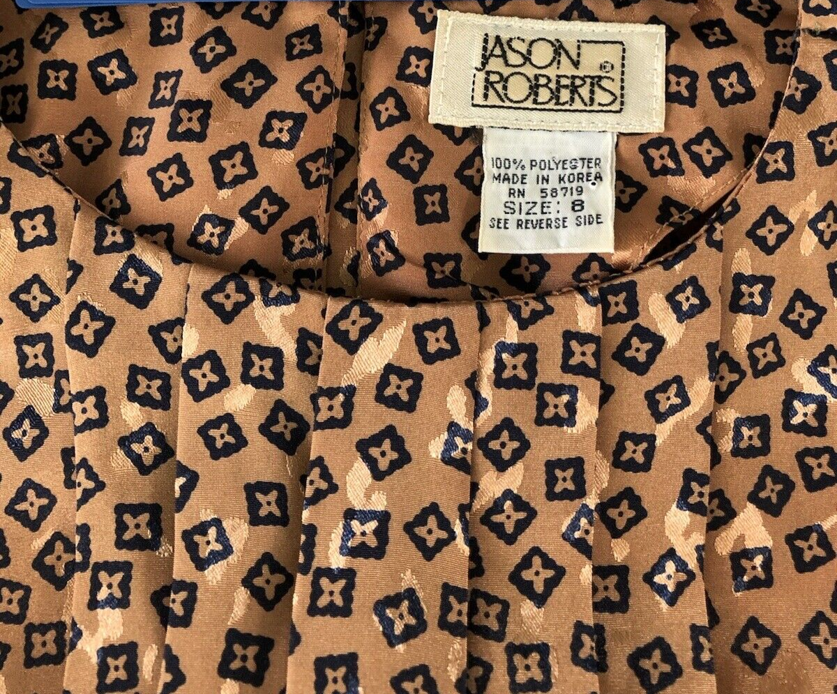VTG Jason Roberts Blouse 8 Gold/Blk Pleated Front & Shoulders Retro Office Wear Chest 39 " (underarm seam to seam x2) Length 24" (front shoulder to hem) Excellent Fashion Gem Fast shipping , same or next business day with tracking number for confirmation Thank you Questions? Please let me know I answer questions promptly Have a great day! WalkupandDeal offers great deals on previously loved items....... We inspect each garment for any flaws the item may have: missing buttons,holes,spots,tears or pilling. Our suppliers are carefully selected, so we only offer items that are in Great with minimal wear ,excellent,nearly new or New with tags condition. Information on each item can be found in the "item specifics" tab, including: Size, measurements,fabric content and care instructions. Our faculty is a non smoking environment and each item is laundered & steamed prior to listing and shipping. We strive for every customer to be happy with their items and as always offer a "return for any reason" policy...... ..... Thank you for shopping with us!!!