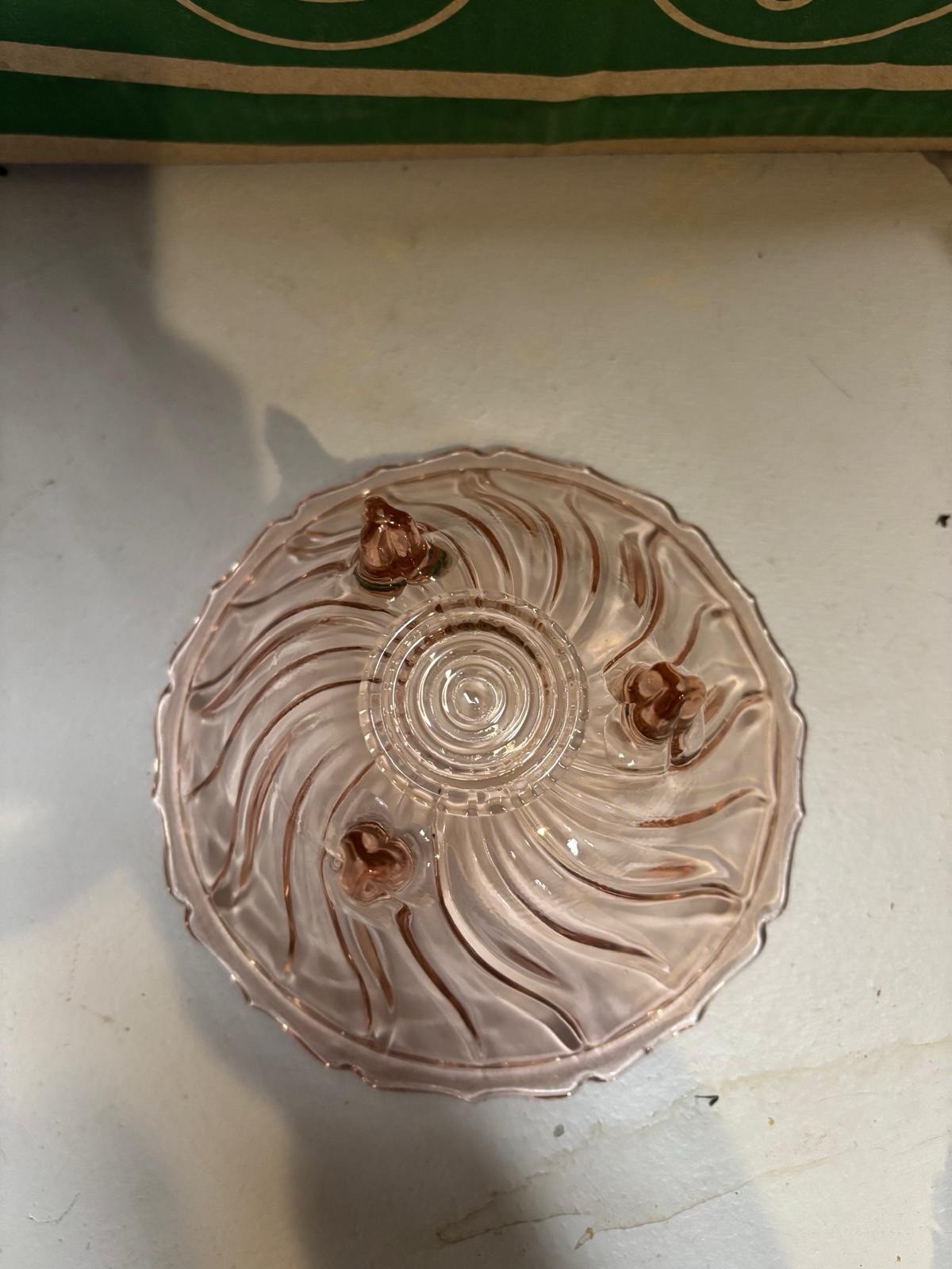 Discover a piece of history with this Vintage Jeanette Glass Pink Depression Swirl Three Footed Candy Dish Bowl. Reflecting the elegance of the Great Depression era, this bowl is an authentic slice of early 20th-century American craftsmanship. Its decorative swirl pattern and glossy finish highlight its timeless appeal, while the gentle pink hue adds a touch of soft elegance to any display. Crafted between 1930 and 1939, the bowl measures 5.5 inches in diameter and stands 2.75 inches tall, with a comfortable width of 6 inches for easy handling. Unmarked yet unmistakably vintage, this original piece showcases the pressed glass production style of its time. Please note the care instructions for this treasure: hand wash only to maintain its cherished beauty.