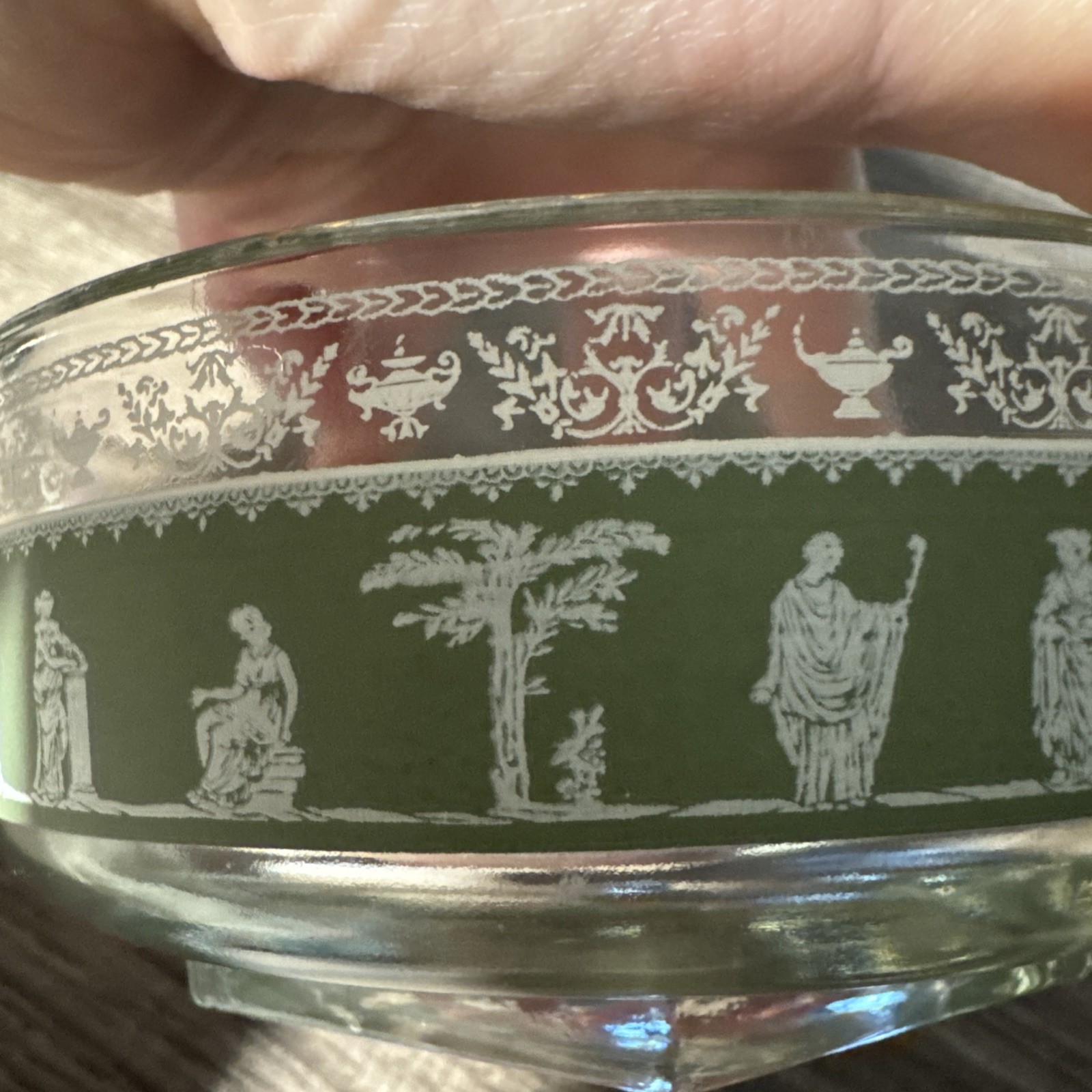 This elegant salad bowl is a must-have for any dining collection. Made of high-quality glass, it boasts a beautiful green color that will add a touch of sophistication to any table setting. The bowl is perfect for serving salads, soups, and other dishes, making it a versatile addition to your kitchen. Its unique Wedgewood Grecian design is inspired by ancient Hellenic art, making it a conversation starter at any gathering. Whether you're hosting a dinner party or enjoying a quiet meal with your family, this salad bowl is sure to impress.