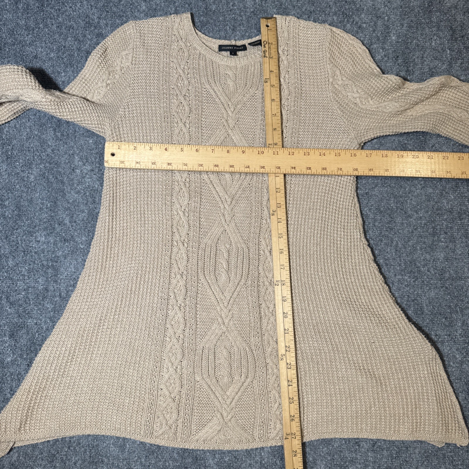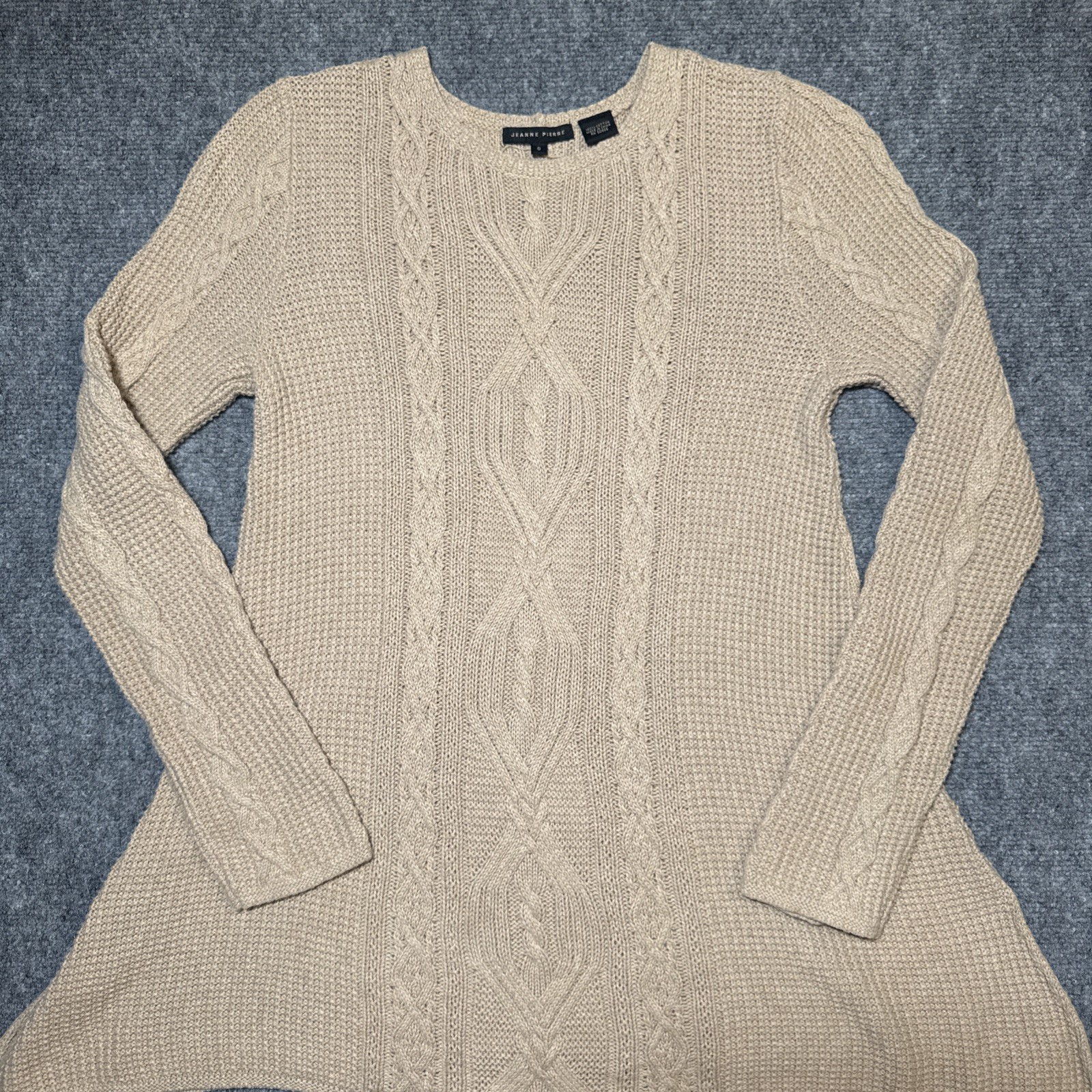 Vintage Jeanne Pierre Pullover Cable Knit Beige Cotton Sweater Women Small Sweater is in excellent condition as shown in pictures, size is also shown in pictures. Feel free to ask any questions about this item, all of our items come from a smoke free environment.