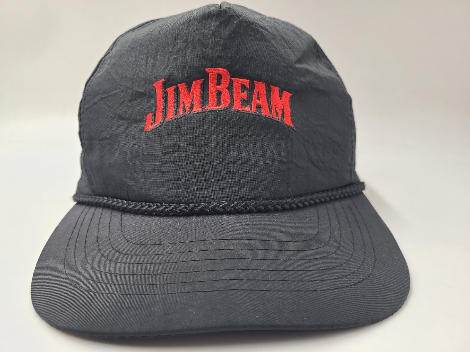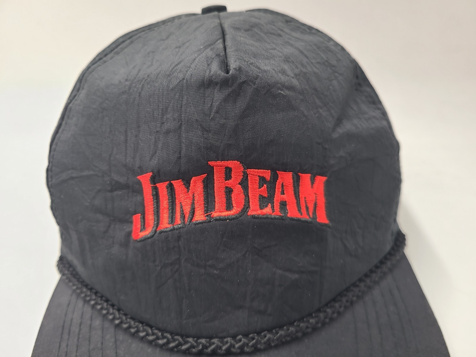 Has some wear on the front and underneath the hat as seen in photos. The tag is also torn. Vintage Jim Beam Bourbon Whiskey Nylon Rope Snapback Hat Cap Spring Break Black. EACH ADDITIONAL HAT PURCHASED IS ONLY $1 ADDED SHIPPING!