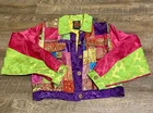This Vintage Jou Jou Patchwork Jacket is a stylish retro and versatile addition to any woman's wardrobe. Made from cotton with a polyester insulation, this mid-length jacket is perfect for casual occasions in the warmer seasons. The colorful patchwork design adds a fun and retro touch, while the brand Joujou ensures quality and style. This jacket is a must-have for the fashion-forward woman looking for a unique and comfortable outerwear option.