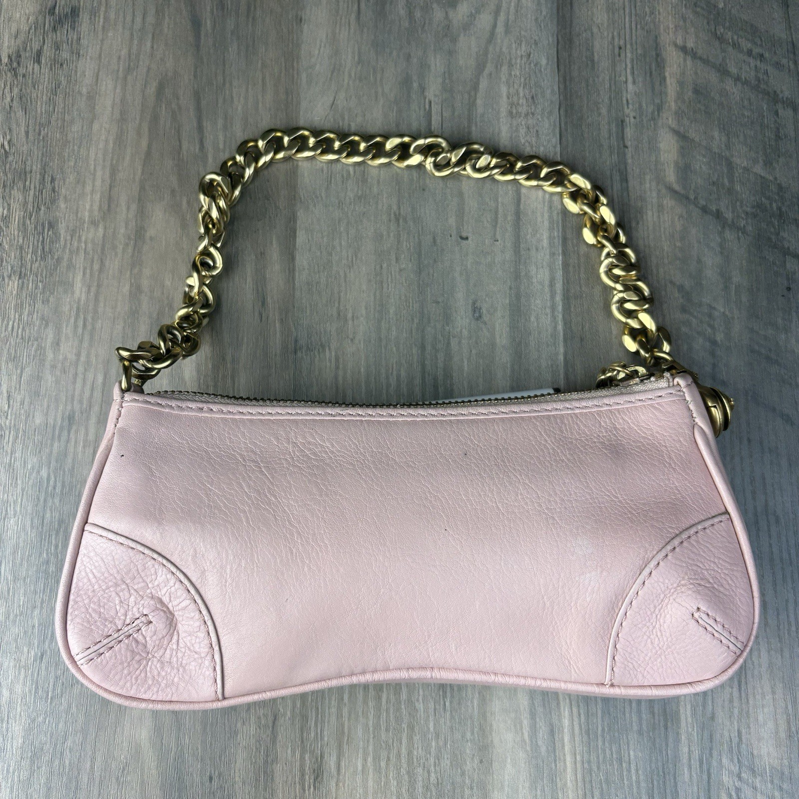 Vintage Juicy Couture Pink Genuine Leather Baguette / Mini Bag Y2K Punk Grunge