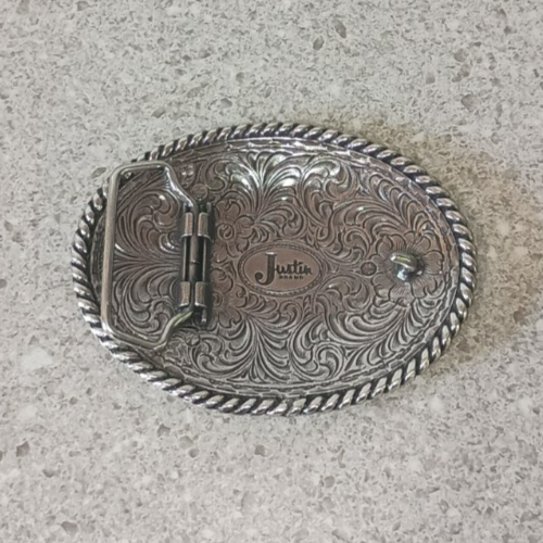 This vintage silver Justin Boots brand western cowboy cowgirl belt buckle is a unique and stylish accessory for men. Made of metal and featuring an oval shape, this buckle embodies a classic cowboy theme with accents that perfectly complement the boots. Proudly made in the United States, this belt buckle is a timeless piece that can add a touch of Western flair to any outfit. Plus, with free shipping included, it's a convenient and eye-catching addition to any wardrobe.