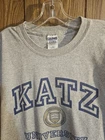 This is a vintage Gildan shirt featuring the Katz University 2002 graphic logo in gray. It is an officially licensed NCAA product made for men in size XL. The shirt is perfect for football fans of Katz University, with a design that captures the essence of the team's spirit. Made in Haiti, this shirt is a great addition to any fan's collection.