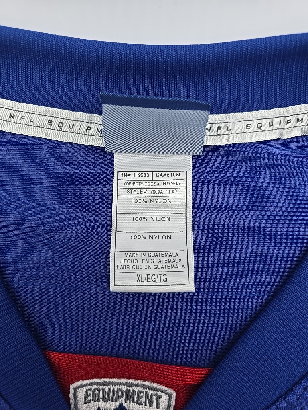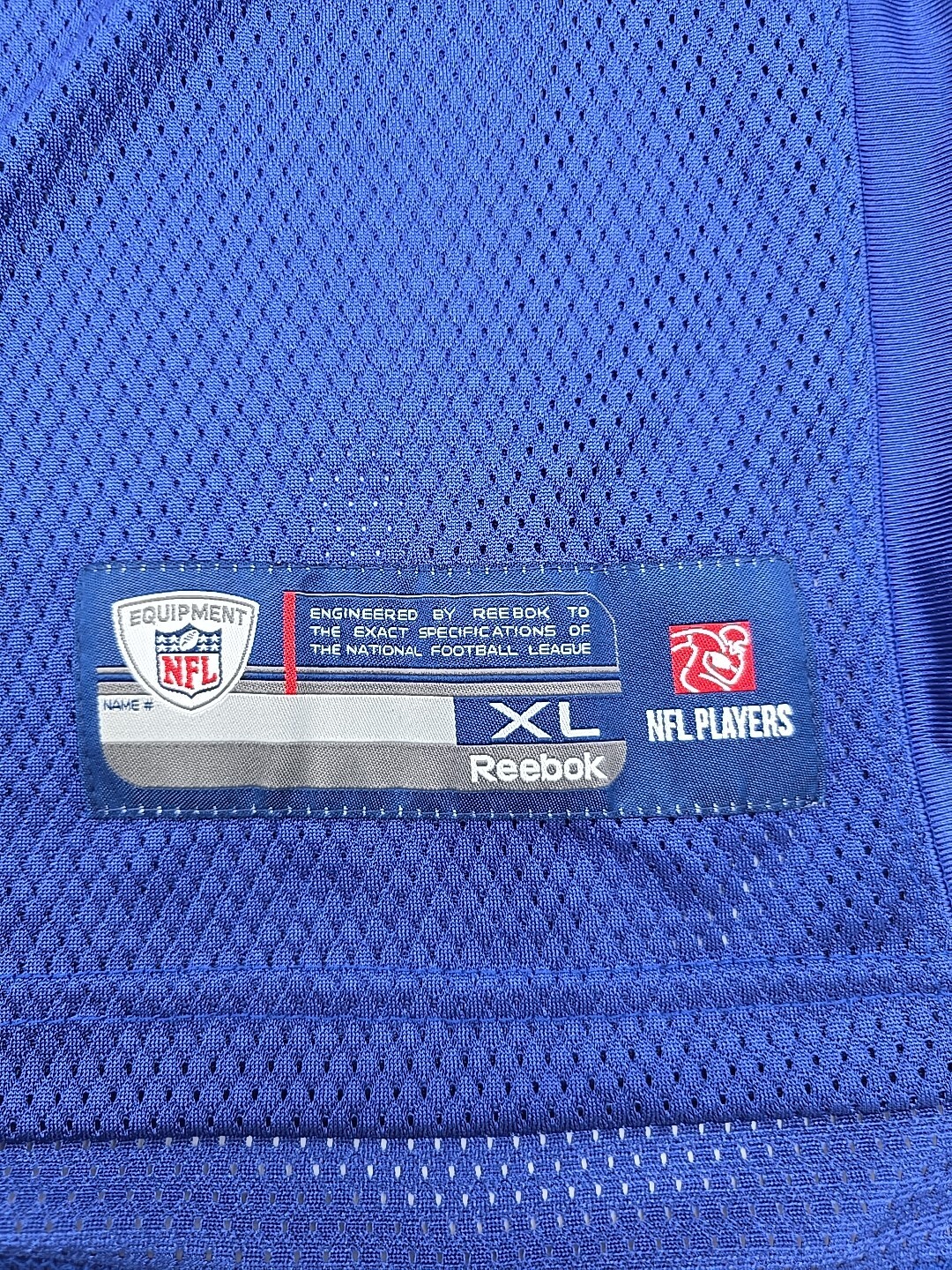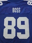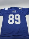 A vintage New York Giants NFL Reebok football jersey featuring player Kevin Boss, number 89. This officially licensed men's XL jersey in blue color is suitable for the regular season. It is made in Guatemala and perfect for fans of the National Football League (NFL) and the New York Giants. Check Pictures for flaws and measurements