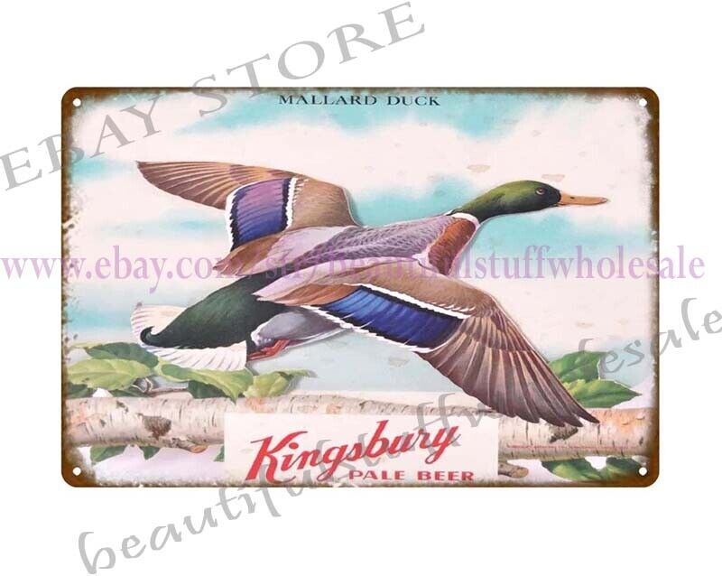 interior design ideas Kingsbury pale beer Mallard Duck metal tin sign Kingsbury pale beer Mallard Duck metal tin sign This vintage style reproduction tin sign metal wall poster is made of iron sheet metal with a unique vintage, rustic, discolored, scratched, aged, scuffed look but a smooth surface. Manufactured with rolled edges and 4 small holes on the corners to easy display . Great wall plaque decor for juice bar, industry restaurant lounge, cozy cafe, coffee shops, club, home, studio, brew bar, cafe, cantine, garden house, restaurant, tavern, garage, livi Approximate Size: 30 x 20cm / 12" x 8" We ship from U.S.. Buy from us so you do not need to wait months for your products. Fast shipping by USPS postal mail, sending out from Washington State, U.S.. Quick and reliable. Color and Design: As shown in the pictures. Please note inconsistencies in color, texture, pattern placement may occur. All sizes are approximate. Color issues: Please kindly note that photo may be slightly different from the actual item in terms of color due to the lighting during photo shooting or the monitor display. Product Code: bj216-s26813 Listing and template services provided by inkFrog On Mar 3, 2025 at 00:16:35 PST, seller added the following information: