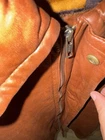 Rare find. Genuine leather. Fairly worn. Visible wear and tear. Visible stains. Elbow pads on sleeves! Please review photos before purchasing. Item is sold as is.