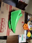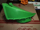 This is a vintage Lawn-Boy mower chute grass catcher side discharge attachment in green color. It is compatible with Lawn-Boy brand mowers and is made of plastic material. The item was manufactured in the United States and offers a nice addition for collecting grass clippings during mowing.