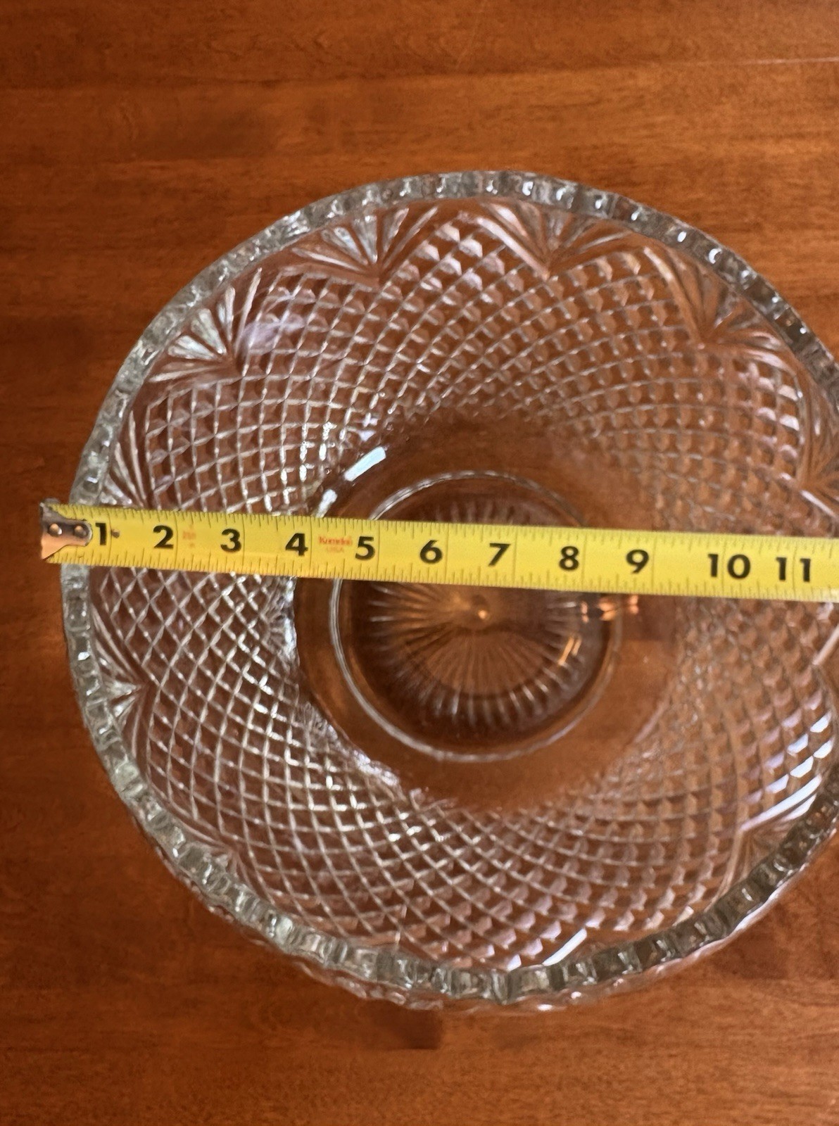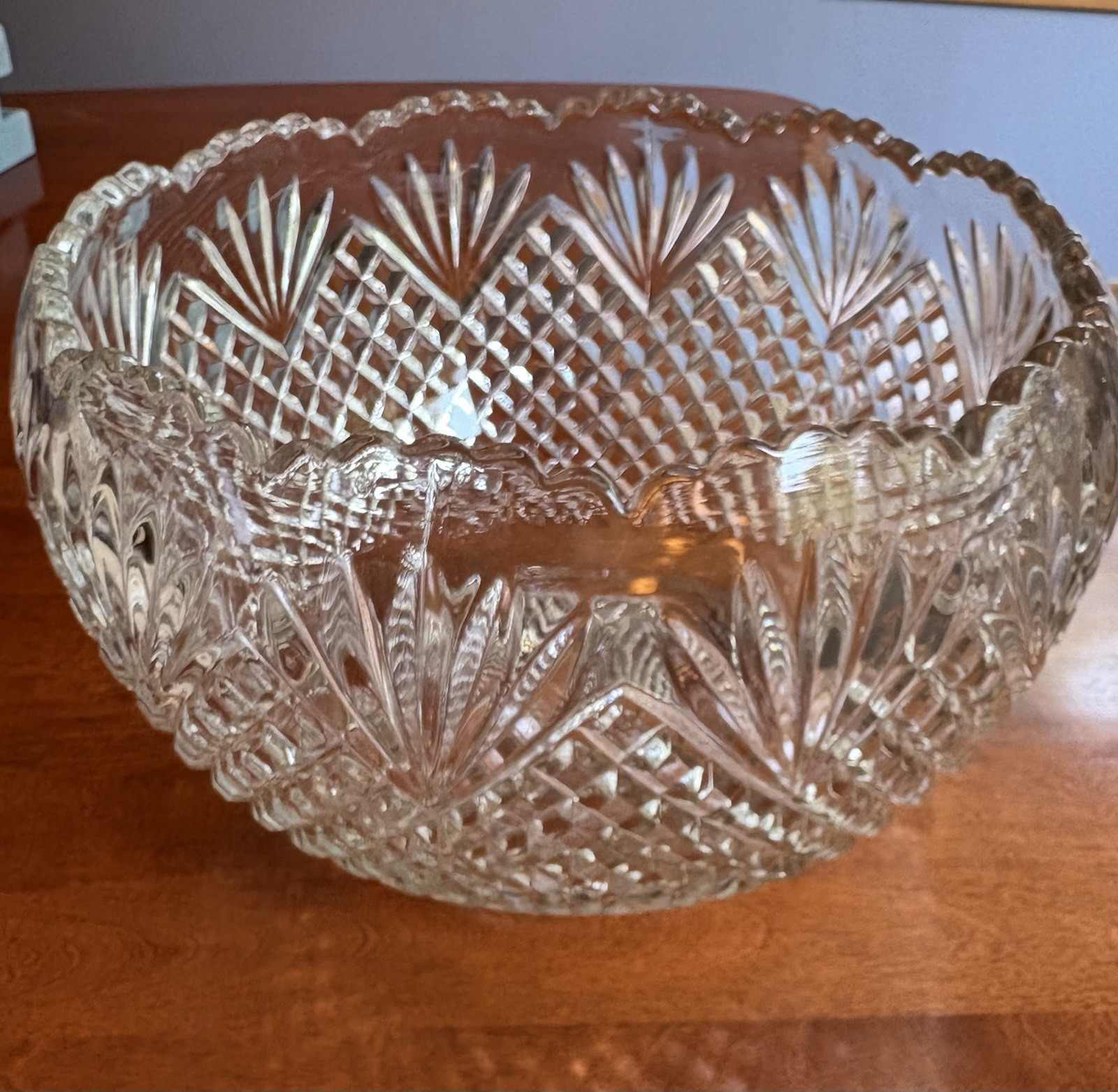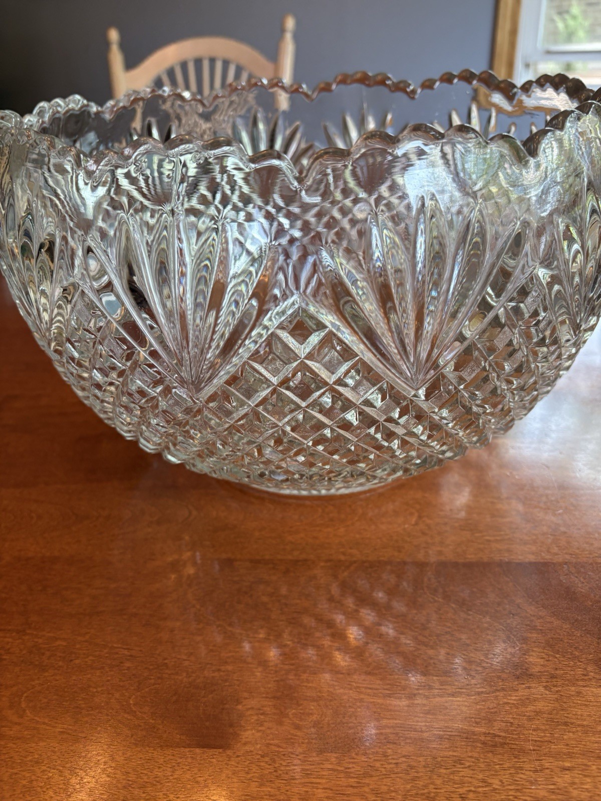 This vintage LE Smith handmade crystal glass punch bowl set is a stunning piece of decorative cookware that includes 18 cups, all neatly stored in the original box. The clear glass material and classic vintage pattern make this set a timeless addition to any table setting. With its Made in the United States craftsmanship, this punch bowl set exudes quality and tradition. Perfect for serving punch or punch bowl cocktails, this set is sure to impress both guests and collectors alike.