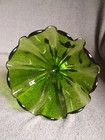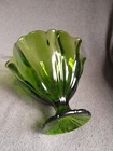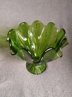 Vintage LE Smith Swung Green Glass Footed Handkerchief Bowl!