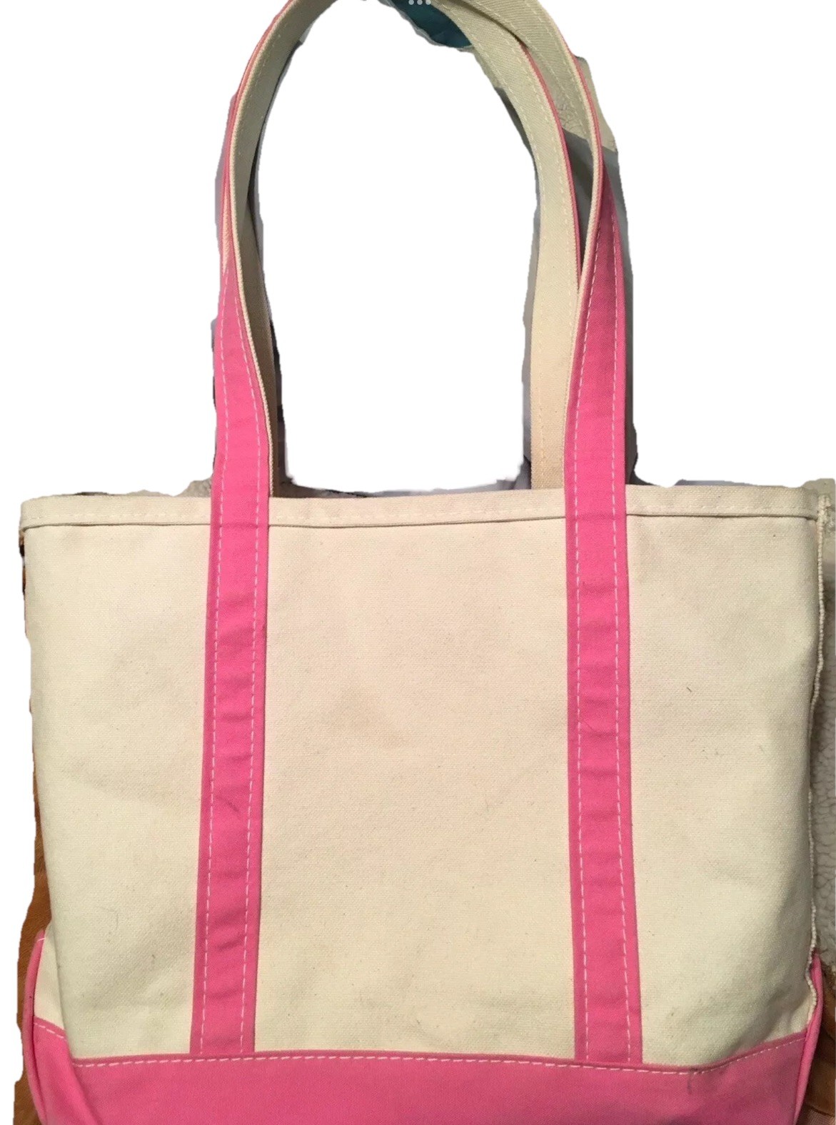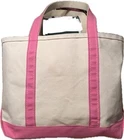LL Bean Boat & Tote Pink Trim Tote Bag Vintage Long Handles Tote Medium Minor Wear and Marks