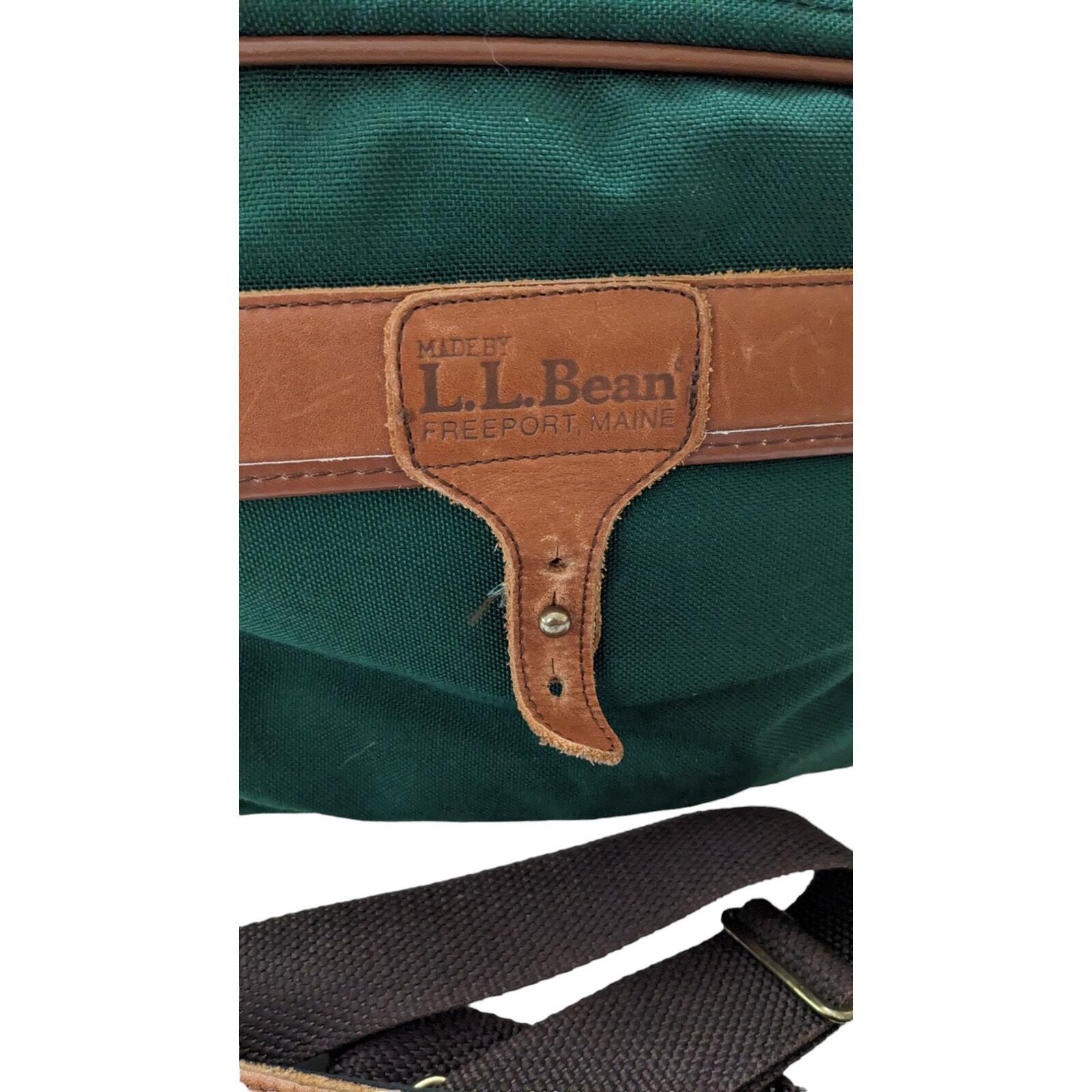 Vintage LL Bean Canvas Leather Duffle Bag Green Large Shoulder Strap Gently used and in very good condition. No stains or odors. We ship daily.
